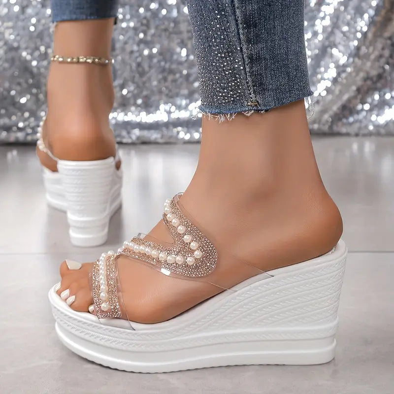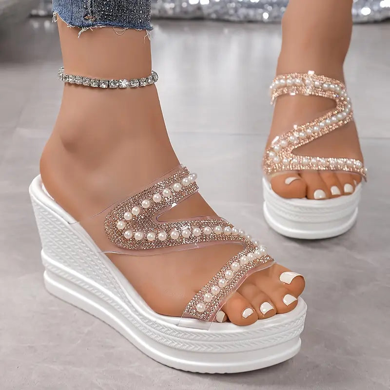 Step into Shine with Celestina Pearl Wedge Sandals™